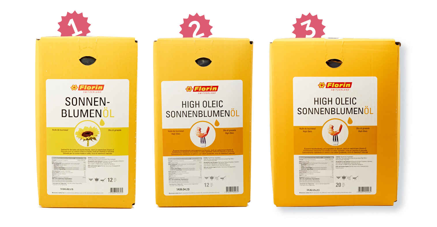 Im Dezember haben wir wieder unsere beliebte Sonnenblumenöl-Promotion für Sie im Angebot. Einmal das klassische Sonnenblumenöl von Florin in der 12l- und das High Oleic Öl in der 12l und 20l Bag-in-Box.